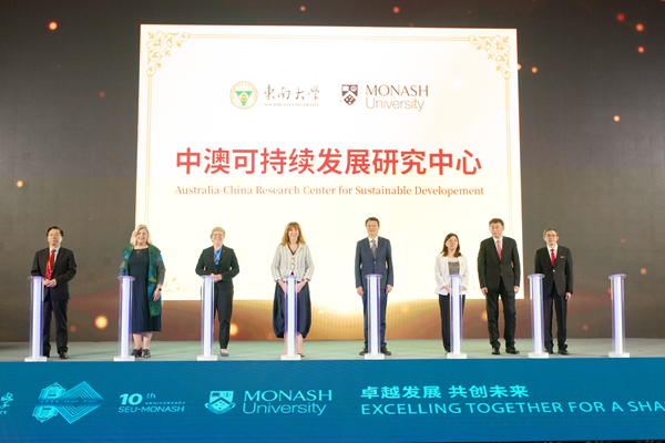 蒙纳士大学和东南大学校领导为中澳可持续发展研究中心和梦动国际书院揭牌。