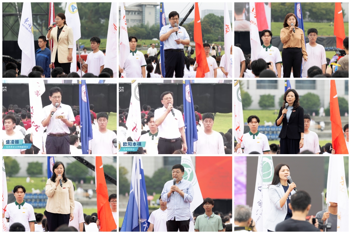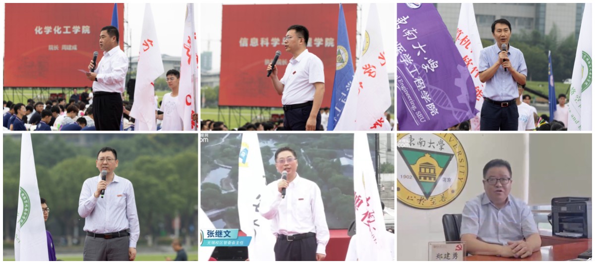 首先登台的是9位学生代表,他们中有2023级新生代表计算机科学与工程学院、软件学院、人工智能学院本科生舒展,吴健雄学院本科生肖映天,材料科学与工程学院博士生徐潇航,网络空间安全学院硕士生雷镇宇,艺术学院本科留学生荷亚;在校生代表本科生建筑学院王小瑜、经济管理学院龙璇,博士生机械工程学院任彦君、信息科学与工程学院曹阳,他们以“东大我想对你说”为题,分享了各自的追梦故事,引起了现场学生的阵阵共鸣。