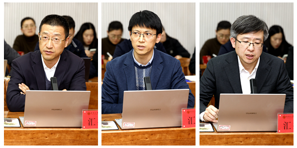 随后,发展规划与学科建设处处长费庆国作“教育部学科交叉中心试点建设工作要求及我校推进情况”汇报,人事处处长吴在军作“学科交叉人事制度改革方案”汇报,学术委员会秘书处副主任熊文作“学术治理改革方案”汇报。