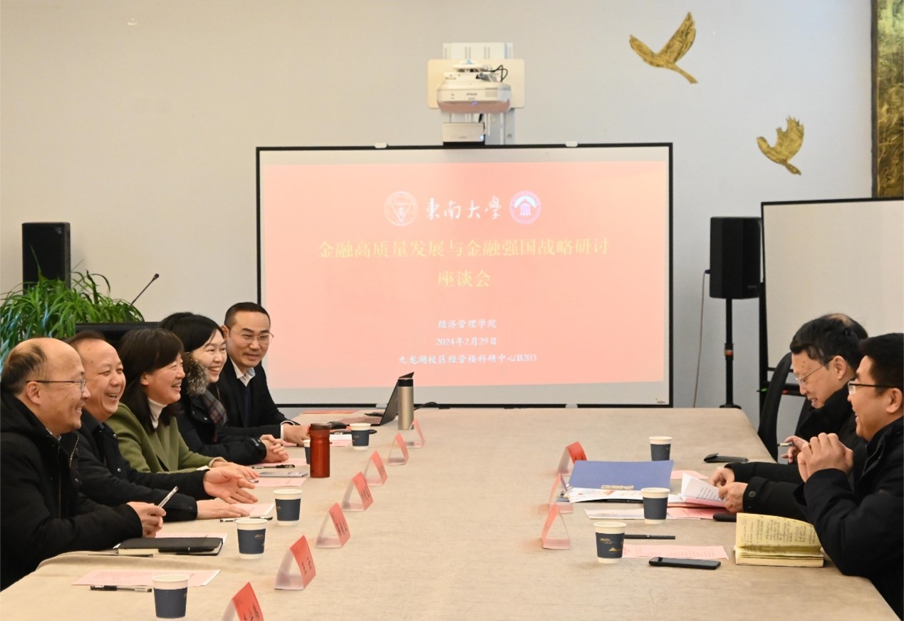 东南大学首席教授、金融系主任刘晓星作《谱写金融高质量发展新篇章,实现金融强国战略》主题报告,详细介绍了金融学科建设和服务国家战略的情况;经济管理学院负责同志分别汇报了学院面向国家重大战略需求开展科研和社会服务的工作思路框架;金融学科团队成员围绕中国特色金融发展、金融工作的人民性、金融开放与安全、学校如何为金融强国做贡献等方面作了发言。