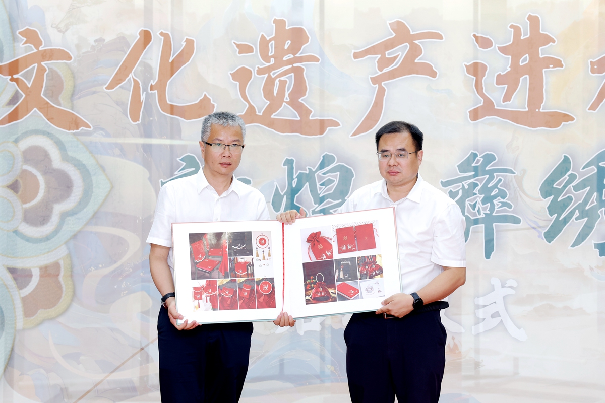 黄如、邓立红、郭青林、宋真、马特、刘攀、任利剑共同启动文化遗产进校园——敦煌展、彝绣展。