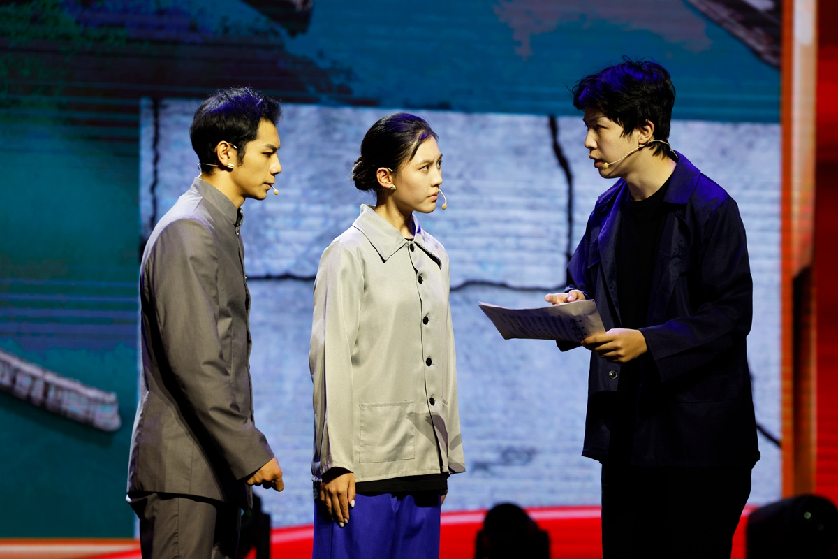 第一篇章“初心如磐 嘱托领航”以情景剧的形式演绎了一代代东大人赓续红色血脉,投身教育救国、教育兴国、教育强国的动人故事。东南大学校史专家刘云虹、“红色梅庵”讲解团志愿者以“梅庵”为起点,将“团二大”的召开、“黎明前最后倒下的雨花英烈”成贻宾以及西南服务团的故事娓娓道来。感人至深的讲述引发全场共鸣,2024级新生代表表示,在中国式现代化建设新征程上,新一代东大人将以梅庵精神为指引,深入践行习近平总书记的重要回信和考察紫金山实验室的重要指示精神,牢记初心使命、勇攀科技高峰,为中国式现代化助力添彩。